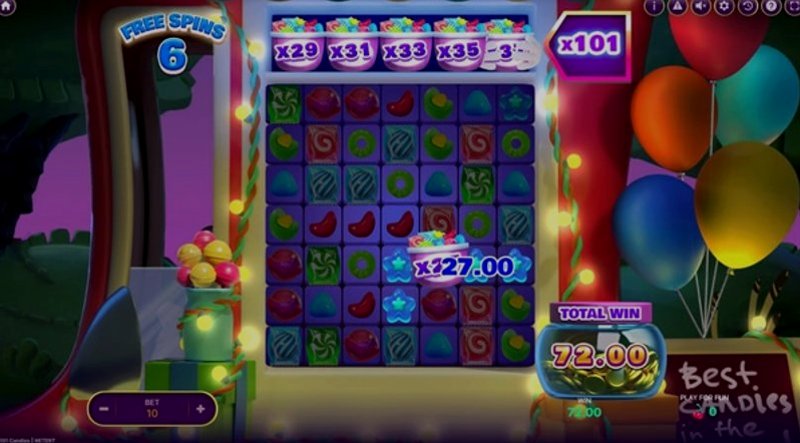 Теперь давайте поговорим об игровом процессе. 101 Candies следует классическому формату слота с 5 барабанами и несколькими линиями выплат. Символы на барабанах — это различные виды конфет, каждая из которых предлагает разные выплаты. Чтобы сделать игру еще более интересной, есть бонусные функции, такие как дикие символы, скаттеры и бесплатные спины, которые могут увеличить ваши выигрыши.