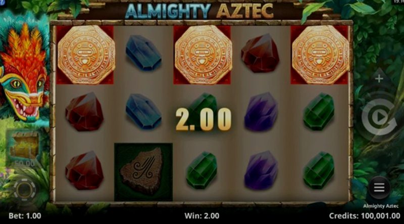Almighty Aztec предлагает классическую конфигурацию из пяти барабанов с 10 линиями выплат, что делает игру понятной как для опытных игроков, так и для новичков. Игровой процесс плавный и увлекательный, с такими функциями, как дикие символы, бесплатные вращения и множители, добавляющими слои волнения к каждому спину.