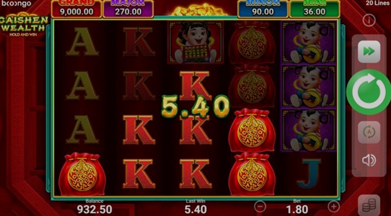 Теперь давайте поговорим о механике игры, которая делает Caishen Wealth выдающимся слотом. Эта игра имеет классическую компоновку с пятью барабанами и тремя рядами, предлагая знакомую настройку как для опытных игроков, так и для новичков. Что отличает её от других, так это захватывающие бонусные функции, включая бесплатные вращения, множители и джекпот, который может привести к щедрым наградам.