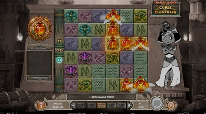 Теперь давайте поговорим об игровом процессе. В этом слоте вы присоединяетесь к Чарли Чансу в его квесте по раскрытию секретов проклятия Клеопатры. Игра имеет конфигурацию барабанов 5x3 с 10 линиями выплат, предлагая хорошее сочетание простоты и волнения. Символы, включая скарабеев, анкхи и иероглифы, прекрасно вписываются в египетскую тематику.