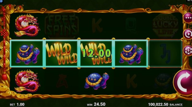 Double Lucky Line привлекает внимание с самого начала своим ярким и красочным дизайном. Игра наполнена символами удачи и богатства, от удачных монет до золотых драконов, создавая погружающий и визуально привлекательный опыт. Как только вы начнете вращать барабаны, вы почувствуете нарастающее волнение!