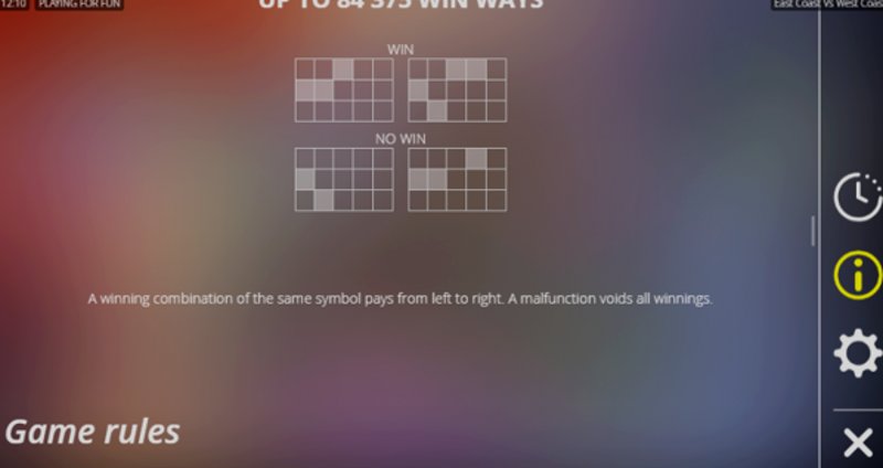 У игрового автомата East Coast vs West Coast RTP составляет около 96,1%, а волатильность высокая, что подразумевает возможность получения редких, но значительных выигрышей.