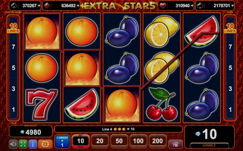 Что касается игрового процесса, Extra Stars сохраняет простоту, но при этом остается увлекательным. Слот имеет пять барабанов и десять линий выплат, что делает его легким для понимания и размещения ставок. Символ звезды выступает в роли диких символов, заменяя другие символы, чтобы помочь вам сформировать выигрышные комбинации.