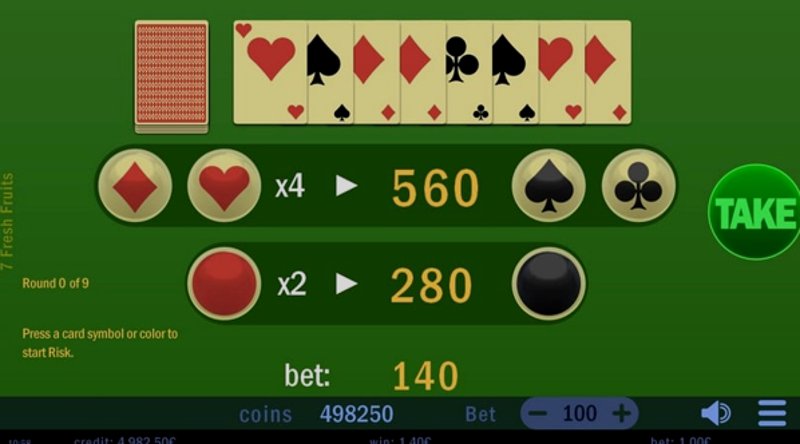Одной из особенностей, добавляющих азарт в Fresh Fruits, является возможность рискнуть. После любого выигрыша у вас есть шанс удвоить свои выигрыши, сыграв в простую карточную игру. Это веселый способ увеличить свои награды, но помните, что это риск, так что действуйте осторожно!