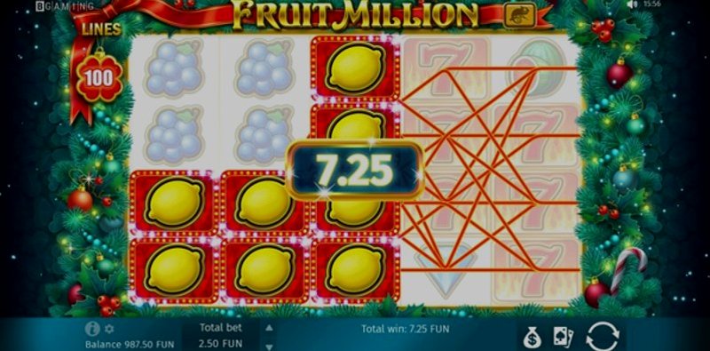 Как только вы запускаете Fruit Million, вас встречает взрыв цвета от множества вкусных фруктов. От вишен и лимонов до арбузов и винограда, классические фруктовые символы выделяются на экране, создавая визуально привлекательный опыт, который одновременно ностальгичен и захватывающ.