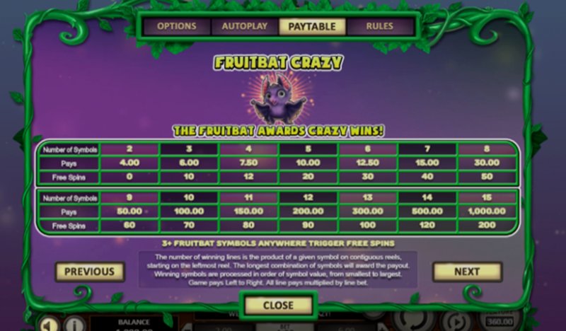 Одно из вещей, которые мне нравятся в Fruitbat Crazy, это его удобный интерфейс. Независимо от того, являетесь ли вы опытным игроком или новичком в слотах, вам будет легко ориентироваться и делать ставки. Игровая механика работает плавно, а анимации добавляют немного игривости в общий опыт.