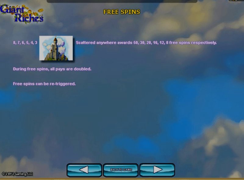 С момента, как я запустил Giant Riches, я был очарован его причудливой темой. Игра погружает вас в мир гигантов, замков и сокровищ, создавая атмосферу эпического игрового опыта. Яркая графика и очаровательный дизайн делают её визуальным наслаждением, которое выделяется на фоне традиционных игровых автоматов.