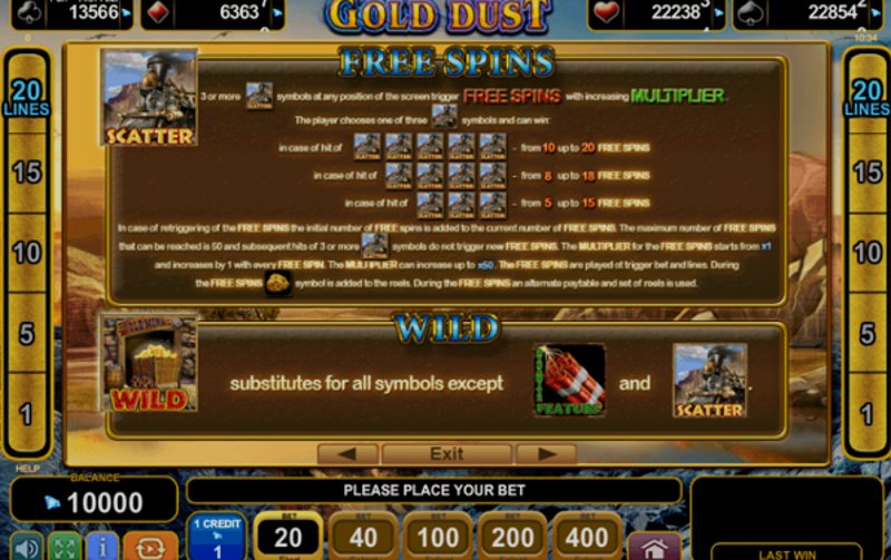 Gold Dust от Amusnet Interactive — это яркий пример хорошо продуманной игры на автоматах, которая сочетает в себе увлекательный игровой процесс с визуально потрясающей презентацией. Независимо от того, являетесь ли вы опытным игроком или новичком в мире онлайн-слотов, Gold Dust предлагает вознаграждающий и развлекательный опыт, который стоит исследовать. Так что хватайте свою кирку, начинайте вращать барабаны и посмотрите, есть ли у вас все необходимое, чтобы разбогатеть!
