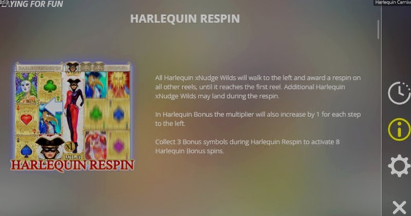 Позвольте мне поделиться немного своей историей с Harlequin Carnival. В первый раз, когда я играл, я был немедленно очарован живой атмосферой и очаровательными персонажами. Функция Harlequin Respin держала меня в напряжении, и я с нетерпением ждал каждого спина, чтобы увидеть, где приземлятся арлекины.