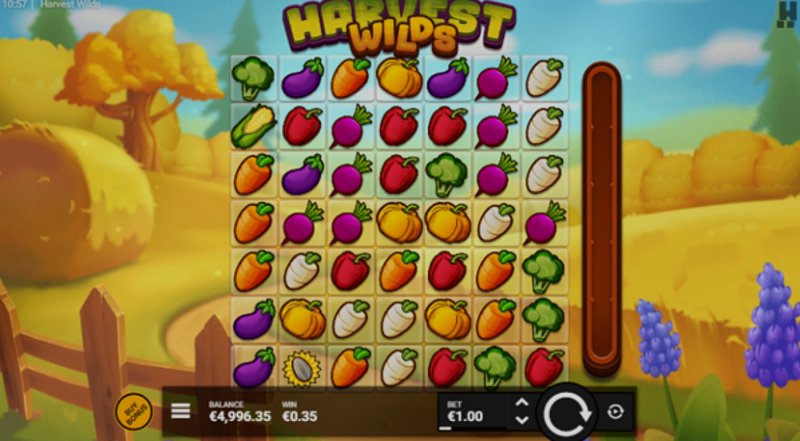 Давайте поговорим об игровом процессе. Harvest Wilds сохраняет простоту своих механик, что позволяет как новичкам, так и опытным игрокам легко погрузиться в игру. Игра имеет классическую сетку с каскадными барабанами, где выигрышные комбинации исчезают, освобождая место для новых символов, что потенциально может привести к последовательным выигрышам.