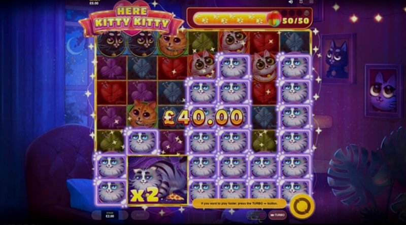 Одно из того, что мне нравится в Here Kitty Kitty, это разнообразие доступных вариантов ставок. Независимо от того, предпочитаете ли вы играть осторожно с меньшими ставками или рисковать ради шанса на большие выигрыши, есть размер ставки, который подходит вашему стилю. Эта гибкость позволяет вам адаптировать игровой процесс к вашему уровню комфорта и бюджету.