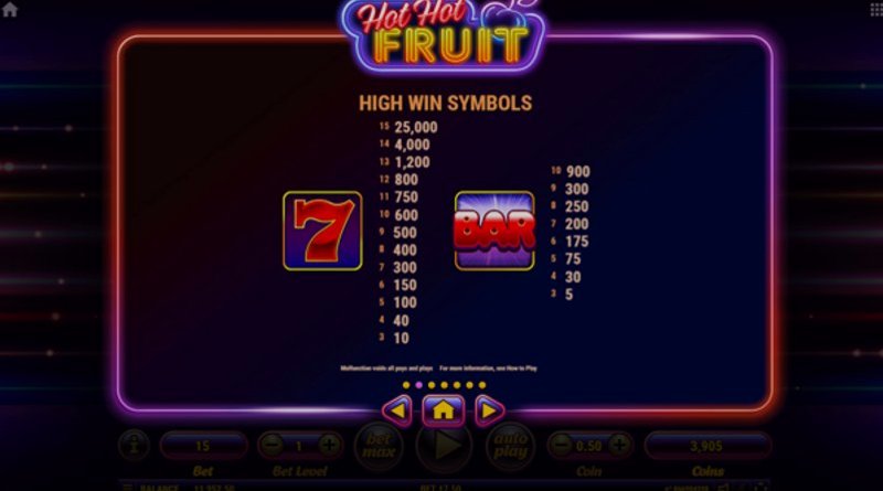 У игрового автомата Hot Hot Fruit от Habanero RTP составляет около 96,5%, а волатильность считается средней, что предполагает баланс между частыми, но не слишком крупными выигрышами и более редкими, но значительными выплатами.