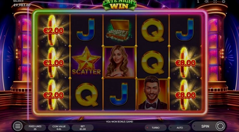 Late Night Win от Endorphina — это энергичный игровой автомат, который сочетает в себе стиль и содержание. С его увлекательным игровым процессом, потрясающей графикой и щедрыми функциями, это игра, которая обещает бесконечное развлечение для игроков, ищущих ночные приключения. Так что готовьтесь зажечь ночь, гонитесь за неоновыми выигрышами и испытайте игровой опыт, не похожий ни на какой другой!