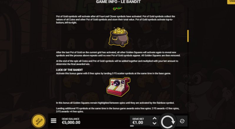 Будь то вращение барабанов или участие в мини-игре, каждый аспект дизайна Le Bandit способствует общему волнению и удовольствию от игрового процесса.