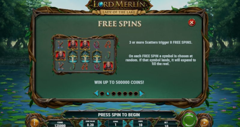 Позвольте мне поделиться немного своим опытом с Lord Merlin and the Lady of the Lake. В первый раз, когда я играл, меня сразу же привлекла захватывающая тема игры и увлекательный игровой процесс. Функция бесплатных вращений была особенно захватывающей, предлагая шанс получить впечатляющие выигрыши с помощью Леди Озера.