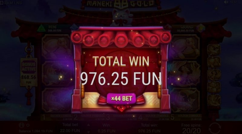 У игрового автомата Maneki 88 Gold RTP составляет около 96%, а волатильность считается средней, что предполагает баланс между частотой выигрышей и их размером.