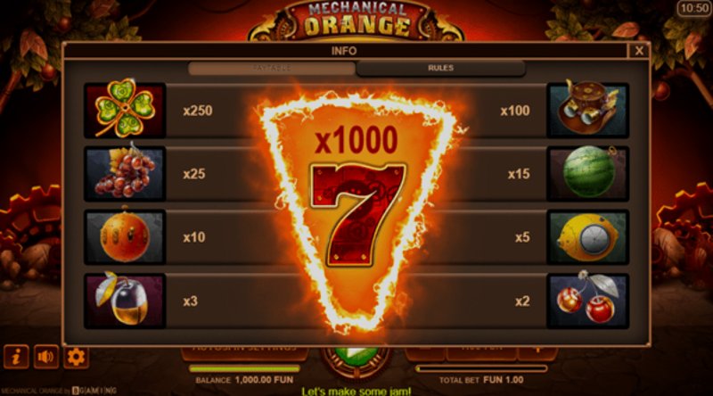 У игрового автомата Mechanical Orange RTP составляет около 96%, а волатильность считается средней, что предполагает баланс между частыми, но небольшими выигрышами и реже встречающимися крупными выплатами.