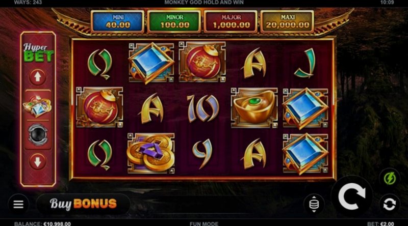 У игрового автомата Monkey God Hold and Win от Kalamba RTP составляет около 96,5%, а волатильность высокая, что подразумевает возможность получения редких, но значительных выигрышей.