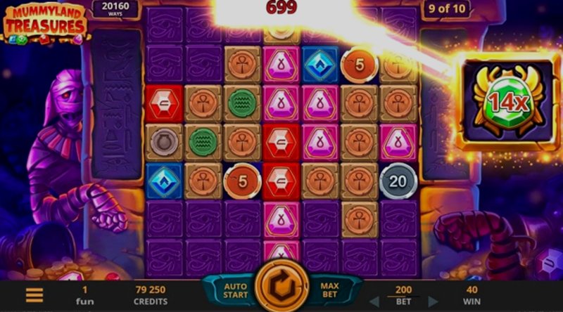 Теперь давайте поговорим об игровом процессе. Mummyland Treasures предлагает классический опыт игры на автоматах с изюминкой. Вы найдете знакомые функции, такие как дикие символы, скаттеры и бесплатные вращения, но что отличает эту игру, так это бонусный раунд. Он активируется при выпадении определенных символов и переносит вас глубоко в гробницу, где вам нужно выбрать правильный путь, чтобы раскрыть скрытые сокровища и разблокировать прибыльные награды.