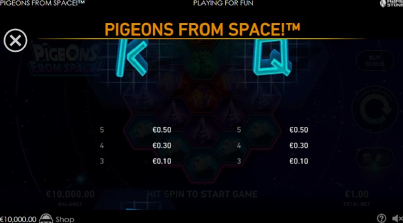 Что касается игрового процесса, Pigeons from Space! предлагает смесь традиционных механик слотов с космическим поворотом. Барабаны заполнены символами на космическую тематику, такими как планеты, ракеты и, конечно, наши голуби-друзья. Игра включает бонусные раунды, бесплатные вращения и множители, которые поддерживают уровень волнения на высоте.