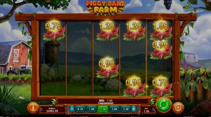 Что касается игрового процесса, Piggy Bank Farm сохраняет простоту, но при этом предлагает вознаграждения. Слот имеет 5 барабанов и 4 ряда, предлагая 50 линий выплат для формирования выигрышных комбинаций. Одной из выдающихся особенностей являются Piggy Bank Spins, где символы свиней-банок могут раскрывать мгновенные денежные призы или запускать раунд бесплатных вращений, добавляя дополнительный уровень волнения в игру.