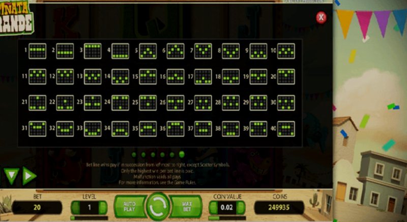 - Наслаждайтесь бонусной игрой: Используйте интерактивную бонусную игру, разбивая Пиньяты стратегически. Не спешите и наслаждайтесь волнением раскрытия скрытых призов.