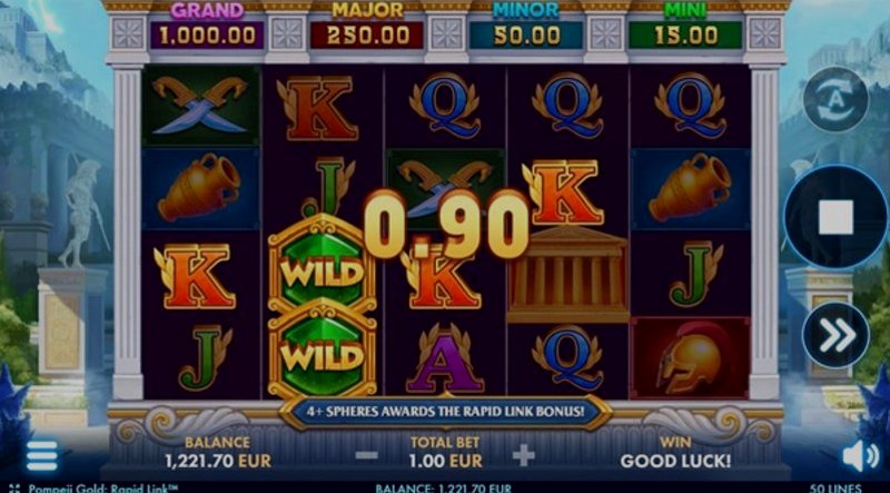 С момента запуска Pompeii Gold: Rapid Link вы переноситесь в древний город Помпеи. Визуальные эффекты игры потрясающие, с детализированной графикой, которая оживляет историческую обстановку. Барабаны заполнены символами, такими как гладиаторы, колесницы и римские императоры, погружая вас в мир Древнего Рима.