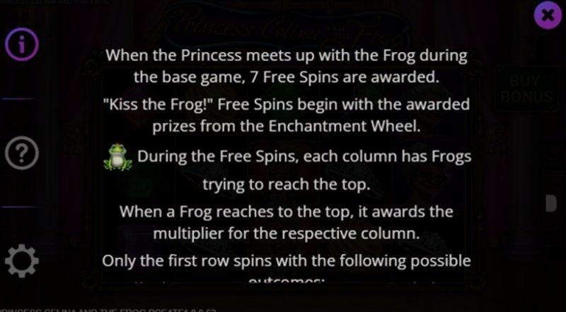 Одним из ярких моментов для меня был интерактивный бонусный раунд, где вы помогаете принцессе Селине снять проклятие с лягушки. Это добавляет дополнительный уровень вовлеченности и делает игровой процесс более захватывающим.