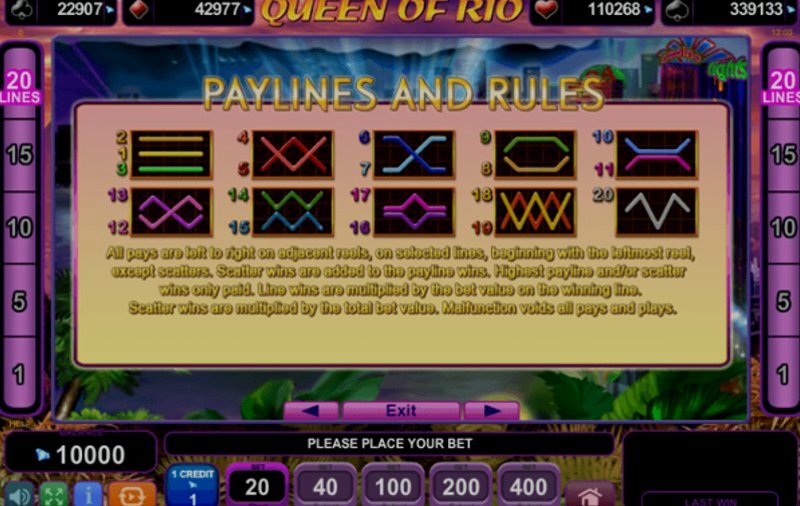 Queen of Rio предлагает классическую конфигурацию из 5 барабанов и 3 рядов с 25 линиями выплат, что делает игру простой для понимания как для опытных игроков, так и для новичков. Игра включает в себя ряд символов, вдохновленных бразильской культурой, включая самбистов, барабаны и яркие перья, что добавляет праздничной атмосферы.