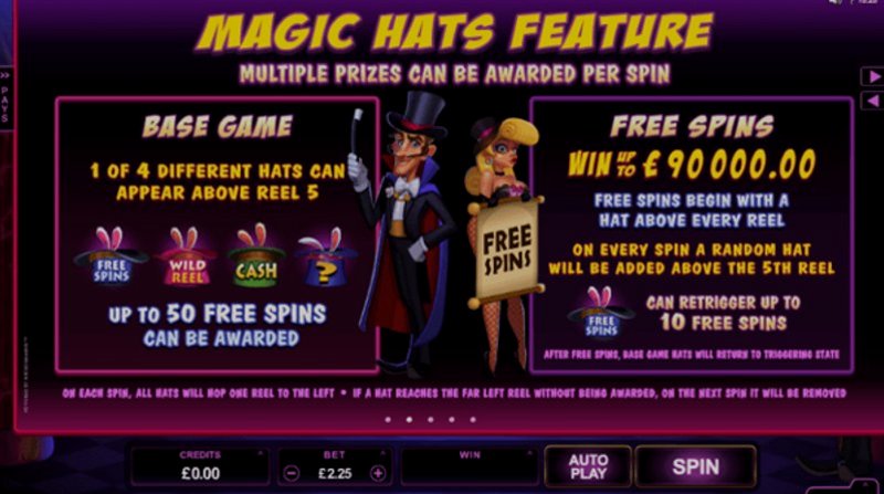 Позвольте мне поделиться немного своим опытом с "Кроликом в шляпе". В первый раз, когда я активировал функцию Магических Шляп и наблюдал, как шляпы раскрывают свои призы, я был захвачен. Ожидание того, что каждая шляпа будет содержать, добавляло дополнительный уровень волнения в игровой процесс. Я с нетерпением ждал следующего волшебного сюрприза, будь то бесплатные вращения или дикий барабан.