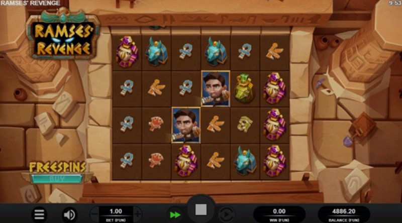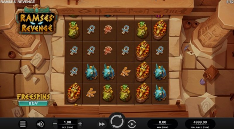 Теперь давайте поговорим об игровом процессе. "Месть Рамзеса" предлагает уникальный поворот на традиционных слотах с сеткой 6x4 и 4096 способами выиграть. Игра включает каскадные барабаны, где выигрышные символы исчезают, чтобы освободить место для новых, что потенциально может привести к последовательным выигрышам за одно вращение.