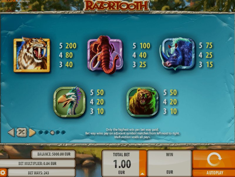 - Изучите функции: Найдите время, чтобы ознакомиться с функциями игры, включая функцию Razortooth и бонусный раунд бесплатных вращений.