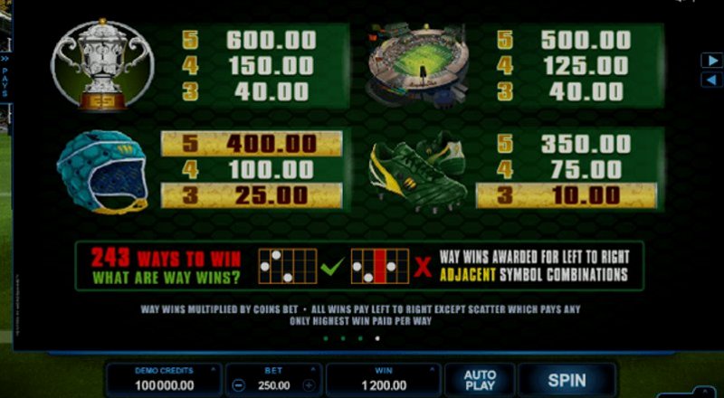 У игрового автомата Rugby Star от Microgaming RTP составляет около 96,5%, а волатильность считается средней, что предполагает баланс между частыми, но небольшими выигрышами и реже встречающимися крупными призами.