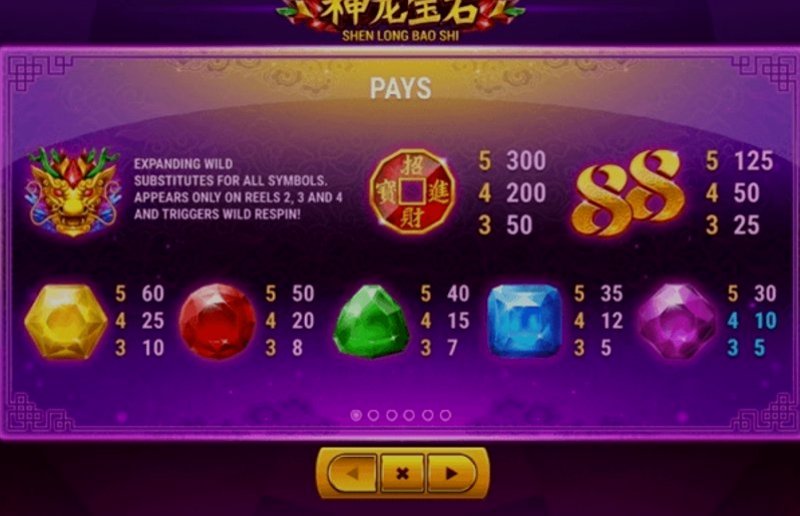 Теперь давайте поговорим об игровом процессе. Shen Long Bao Shi имеет классическую структуру с пятью барабанами и тремя рядами, что делает игру понятной как для новичков, так и для опытных игроков. Символ диких драконов — это ваш ключ к большим выигрышам, заменяющий другие символы для создания выигрышных комбинаций. Обратите внимание на символ разброса, так как он может запустить бесплатные вращения и бонусные раунды, добавляя дополнительный уровень волнения в вашу игру.
