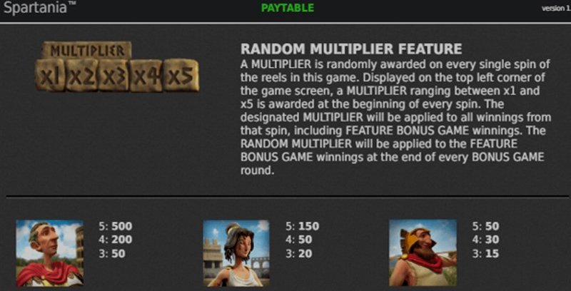 Одним из замечательных аспектов Spartania является разнообразие доступных вариантов ставок. Независимо от того, предпочитаете ли вы играть осторожно с меньшими ставками или рисковать ради шанса на большие выигрыши, здесь есть размер ставки, который соответствует вашему стилю. Эта гибкость позволяет вам адаптировать игровой процесс под ваши предпочтения.