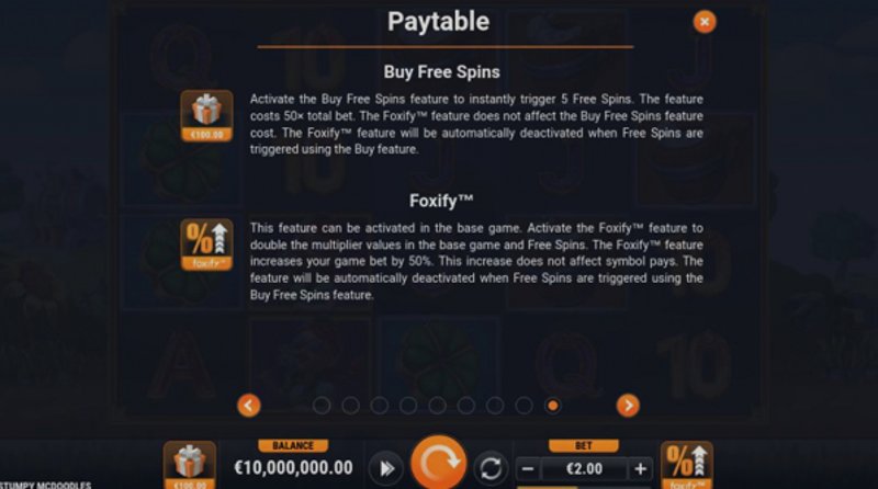 Одним из ярких моментов Stumpy McDoodles является функция бесплатных вращений, которая активируется при выпадении трёх или более символов Scatter Pot. Во время раунда бесплатных вращений вы можете наслаждаться множителями, дополнительными дикими символами и возможностью повторного запуска вращений, что добавляет азарт в игру.