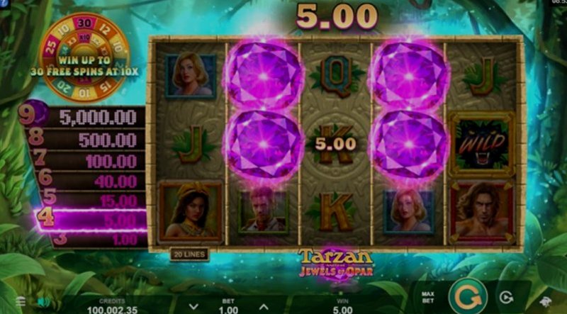 У игрового автомата Tarzan and the Jewels of Opar RTP составляет около 96,5%, а волатильность считается средней, что предполагает более частые, но умеренные выигрыши.