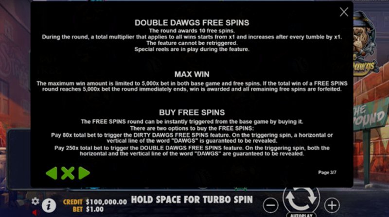Конечно, были моменты, когда удача не была на моей стороне, но это все часть игры. The Big Dawgs продолжали развлекать меня своим увлекательным игровым процессом и вознаграждающими функциями, делая каждое вращение приключением, стоящим того.