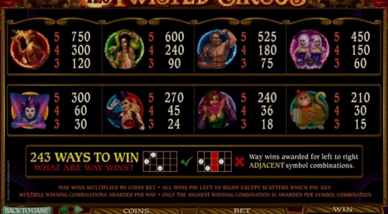 Теперь давайте поговорим об игровом процессе. The Twisted Circus предлагает 5 барабанов и 243 способа выиграть, предоставляя вам множество возможностей для получения выигрышных комбинаций. Обратите внимание на логотип игры, который выступает в качестве диких символов и может помочь увеличить ваши выигрыши. Кроме того, если вы получите три или более скаттер-символа, это активирует бонус Circus Match, где вы можете выиграть бесплатные вращения и множители.