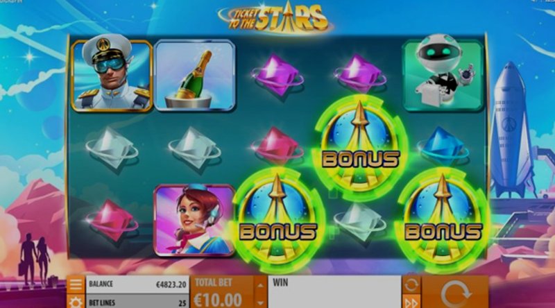 Добро пожаловать, любители игровых автоматов! Сегодня мы отправляемся в космическое путешествие с игровым автоматом Ticket to the Stars от Quickspin. Приготовьтесь к старту в космос и испытайте захватывающее приключение, наполненное футуристической графикой, увлекательными функциями и возможностью астрономических выигрышей!
