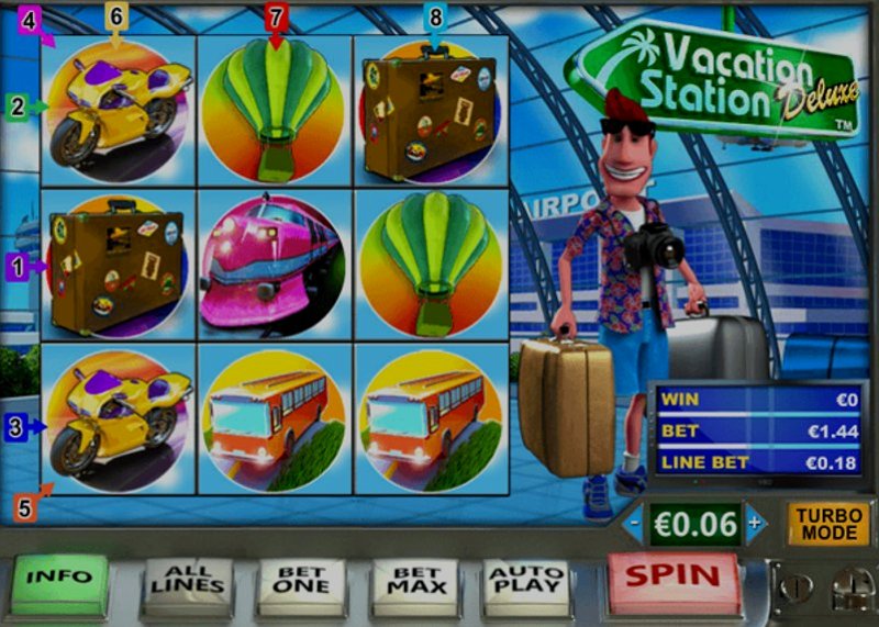 Давайте погрузимся в игровую механику Vacation Station Deluxe. Этот игровой автомат немного отличается от традиционных слотов, к которым вы, возможно, привыкли. Вместо стандартных линий выплат, Vacation Station Deluxe предлагает сетку 3x3 с 8 линиями выплат. Цель — сопоставить символы в любом направлении, чтобы выиграть, что дает вам множество возможностей для получения выигрышей.