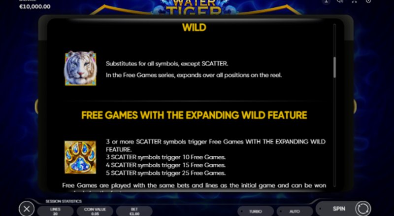 Одно, что мне особенно понравилось, это плавный игровой процесс и интуитивно понятные элементы управления. Независимо от того, являетесь ли вы опытным игроком или новичком в слотах, Water Tiger легко освоить, что делает погружение в действие простым и приятным.