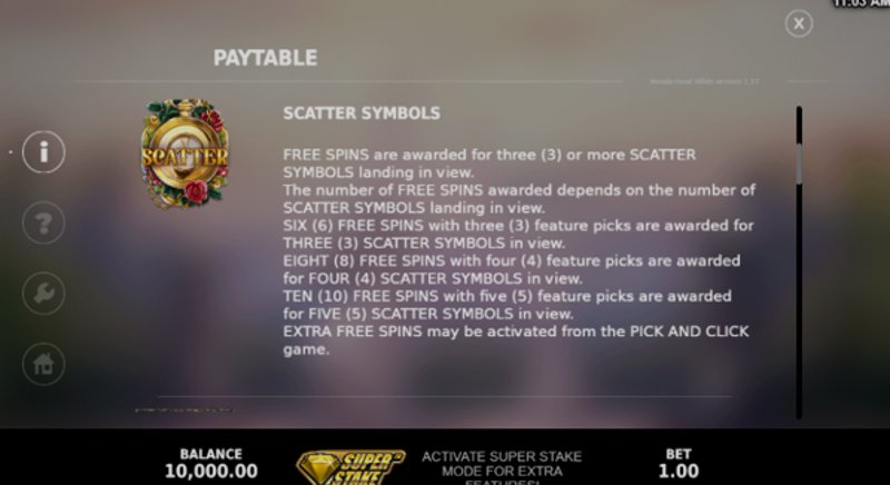 С момента запуска Wonderland Wilds вы переноситесь в мир, словно вышедший из сказки. Яркие цвета, очаровательные персонажи и мистический саундтрек создают погружающую атмосферу, которая захватывает вас с первых секунд. Это как шагнуть в книгу, где каждый спин несет обещание волшебного приключения.